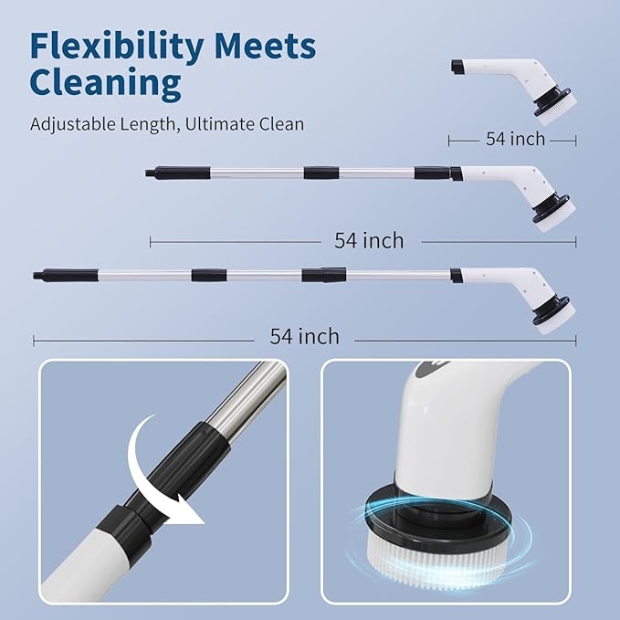 El diseño ajustable de 12 a 54 pulgadas te permite limpiar cómodamente tanto áreas de fácil acceso como rincones difíciles. Su mango telescópico es ideal para evitar posturas incómodas y proteger tu espalda y rodillas, haciendo la limpieza más ergonómica y menos fatigante.